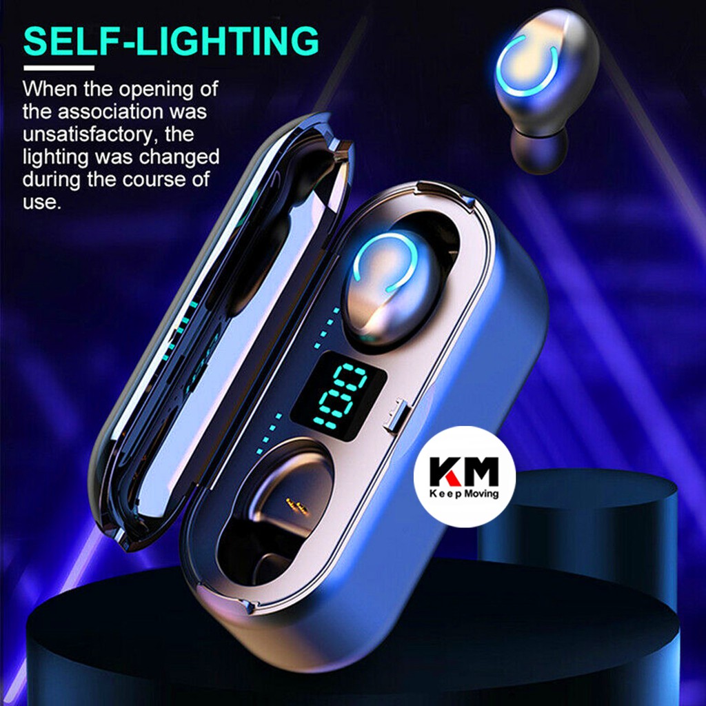 【what do you get?】you will get a portable bluetooth f9 tws earphone with a gift box, and the charging bank headset can charge your mobile phone or ipad or earphone at any time, making your.